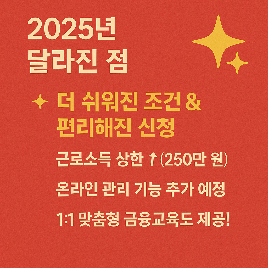 - 근로소득 상한: 230만 원 → 250만 원으로 완화
